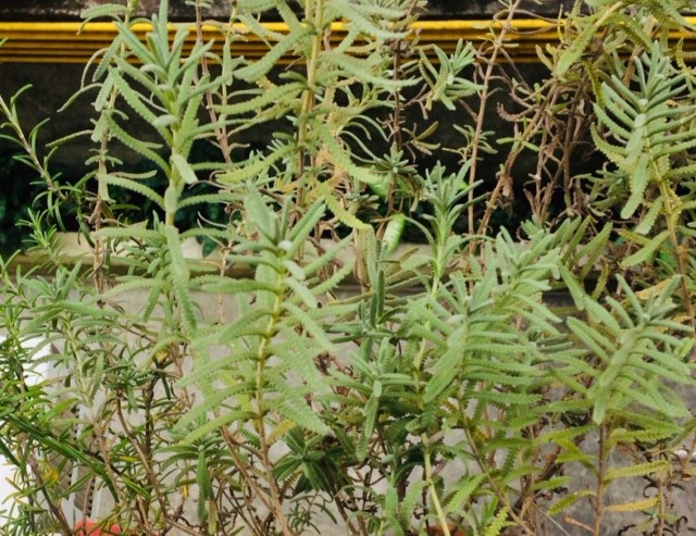 Este é somente um exemplo, que ocupa algumas das quase cem páginas do livro de Mancuso. Ele também discorre sobre a capacidade de as plantas se mimetizarem com outras, o que venho observando aqui na minha janela. Pode ser que eu esteja sendo influenciada pela leitura de Mancuso, mas ando percebendo que as folhas da minha lavanda estão parecidíssimas com as folhas do meu alecrim… Tirei foto para vocês servirem de testemunhas.